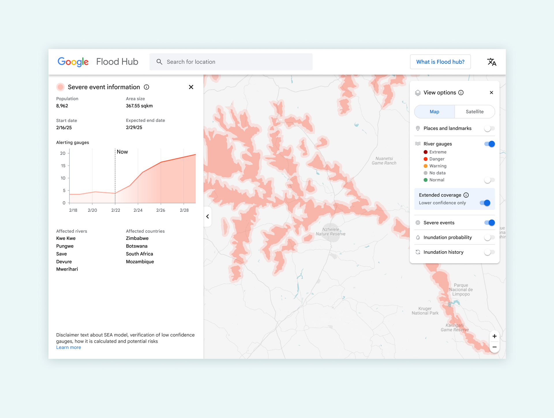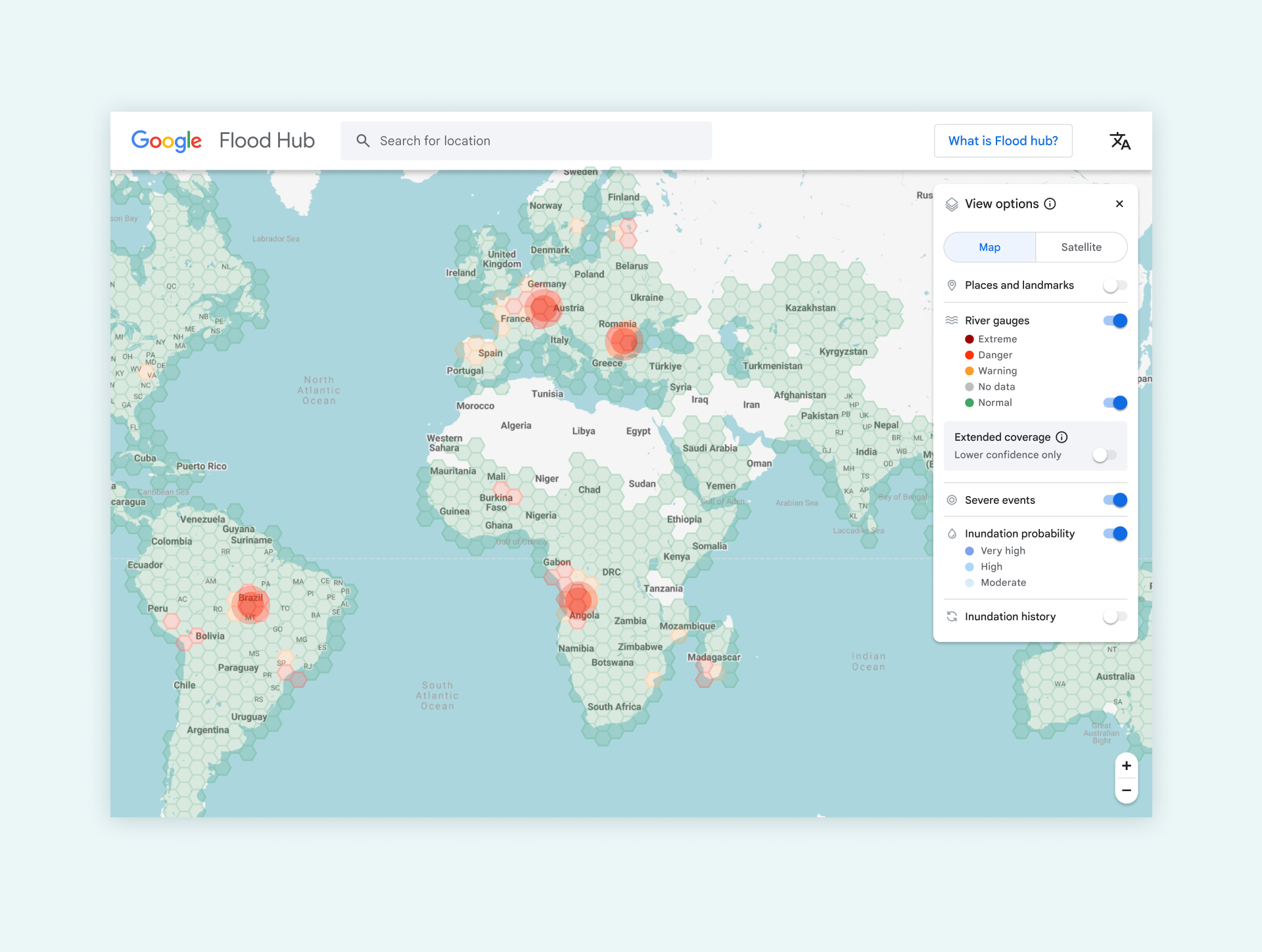 Working with the Google Flood Hub team, I focused on designing a highly adaptable interface that successfully serves diverse user segments, balancing the needs of end-users experiencing a flood with the specialized requirements of experts like NGOs and researchers. A core challenge of the design work involved improving different types of data visualization on the map. This required designing flexible viewing options that allowed users to customize data combinations based on their specific needs, while respecting technical constraints and ensuring an intuitive view customization experience