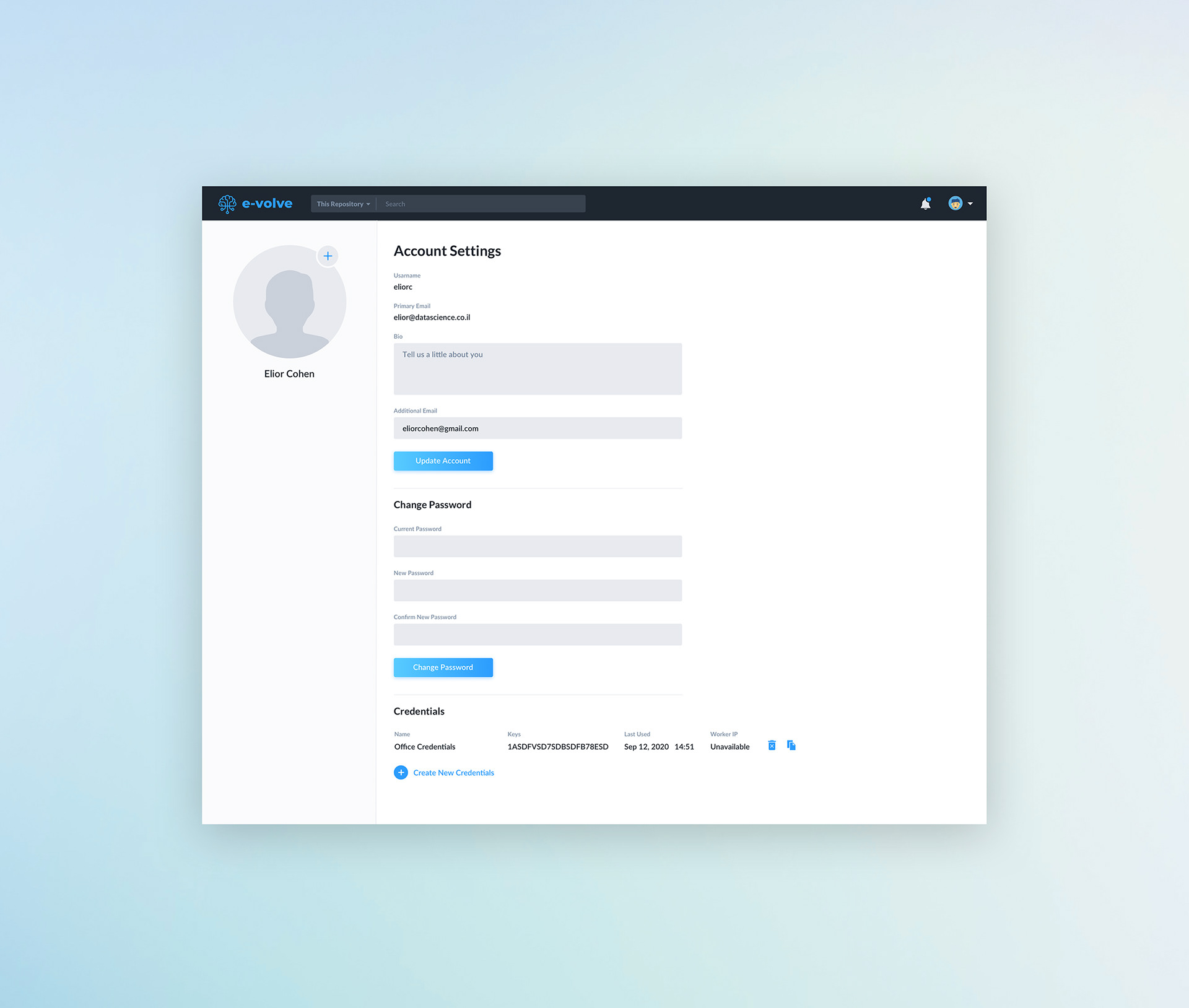 Dashboard design for e-volve