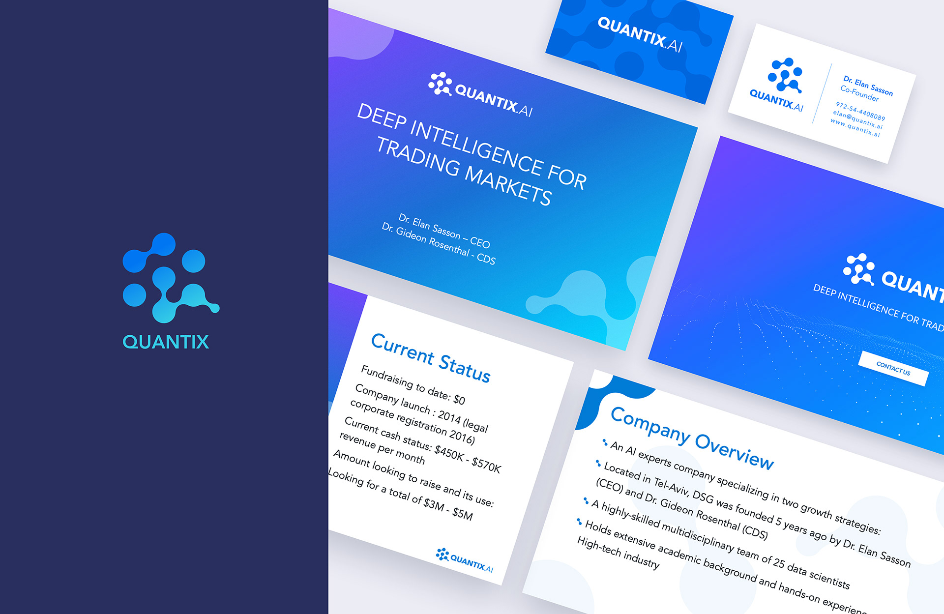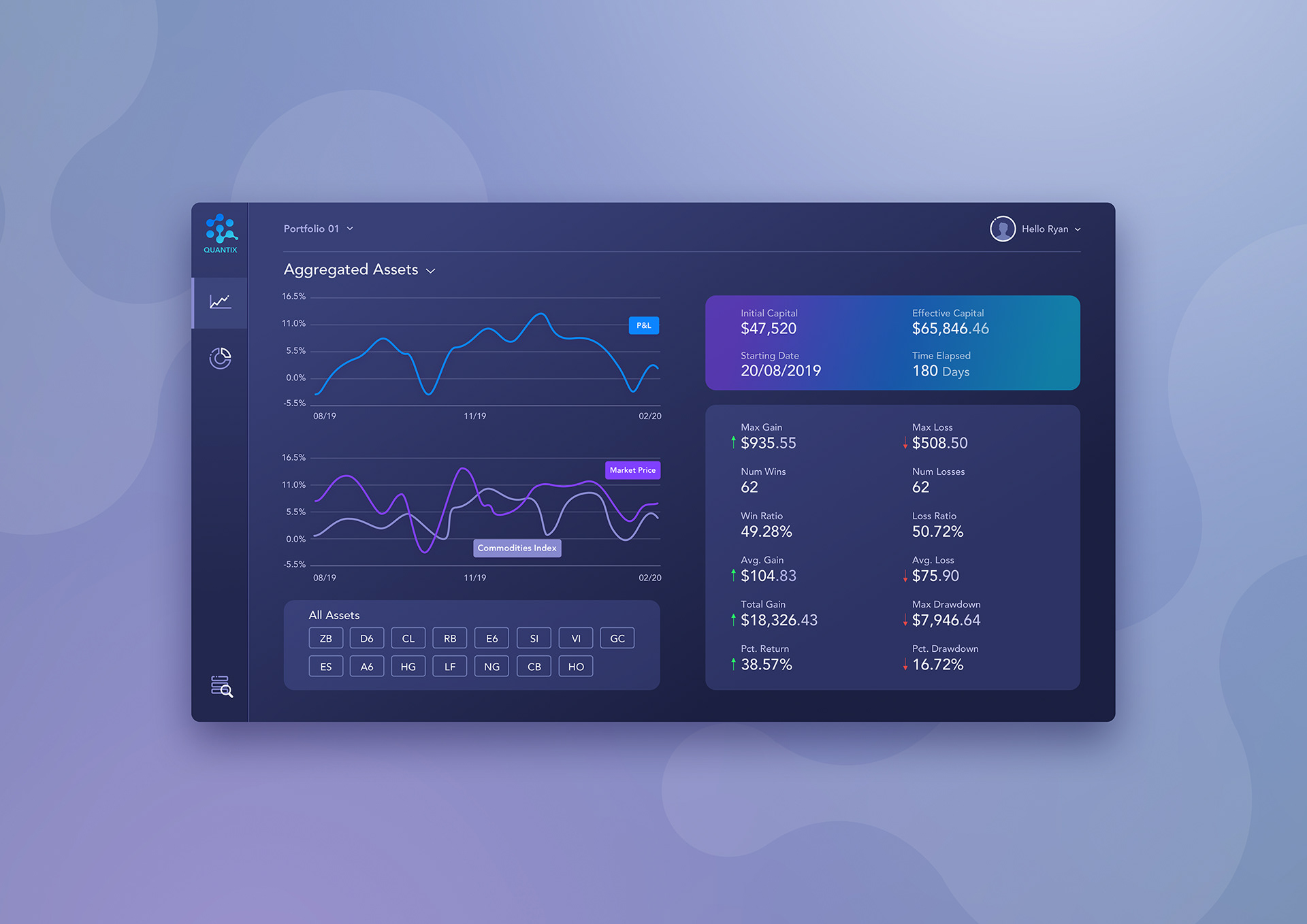 Branding and dashboard design for a startup that created an AI-based algo trading system to analyze trading markets and various assets